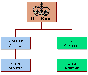 Above: The present hierarchy of Australian Government, where the King or Queen is sovereign and sits at the apex of government.