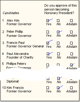 Above: The voting paper used in the election for the Honorary President.